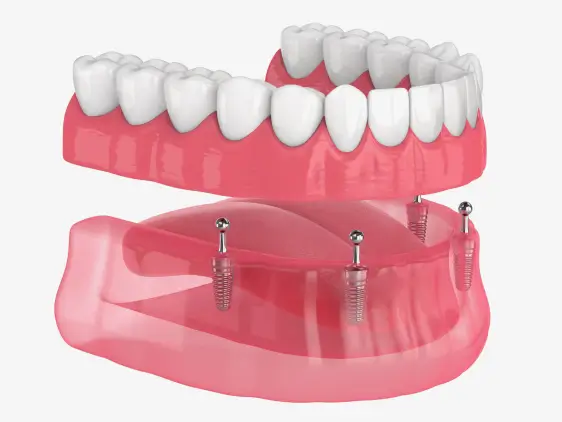 Implant Overdentures may be a suitable option for you if you want a full mouth implant solution that is removable. Compared to traditional dentures, implant overdentures are connected to dental implants which are fitted with a click-in mechanism. They provide a better fit and higher stability than conventional dentures.